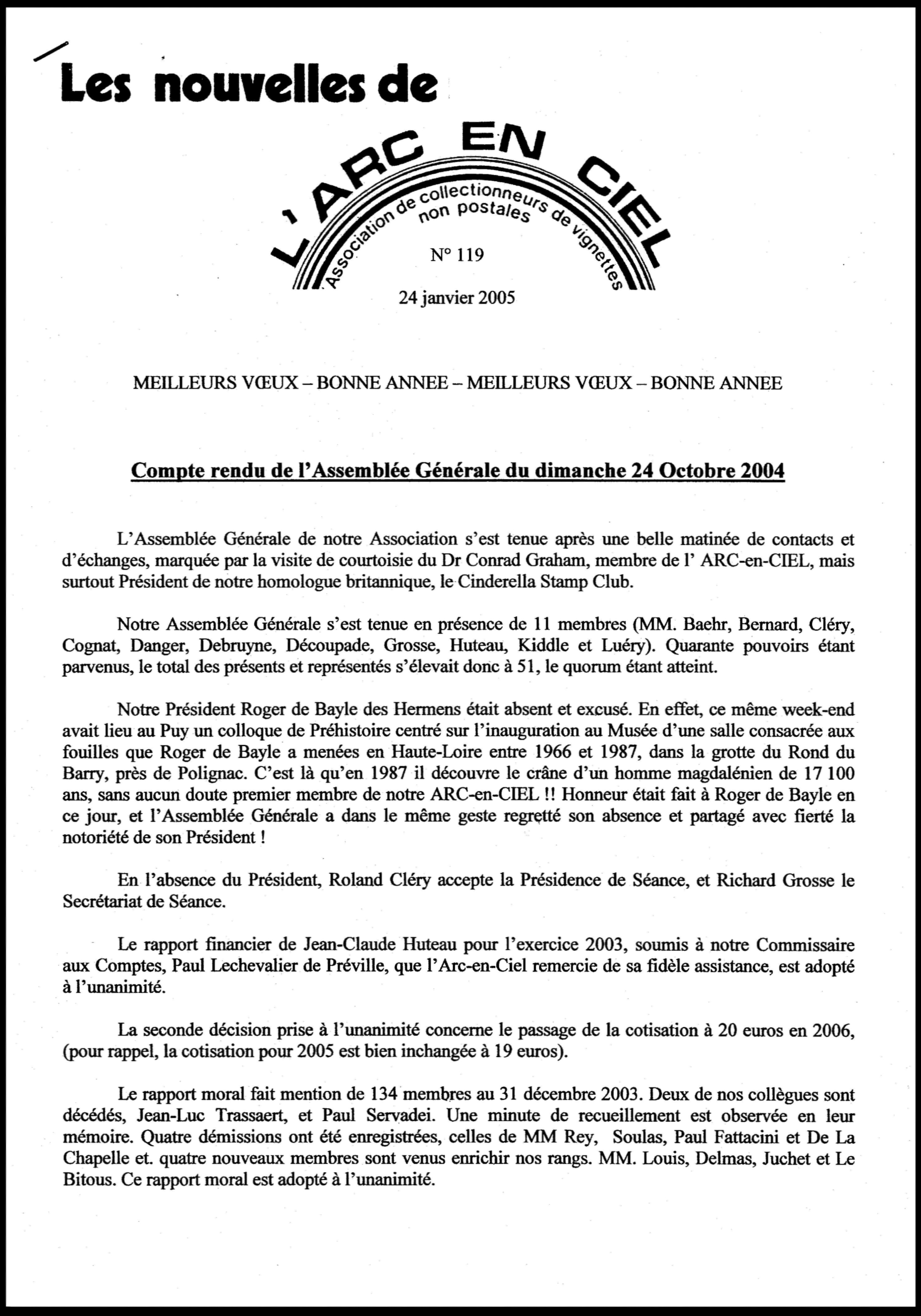 Les logiciels de traitements de texte ont grandement contribué à l’amélioration de la présentation. Le Bulletin se compose dorénavant d’une partie « Vie de l’Association / Articles de fonds » et d’une partie consacrée aux ventes de documents (Vente à Prix Nets et mini-Ventes sur Offres). La fréquence est maintenant trimestrielle. Quant au nombre de pages, il est passé à 31 puis à plus de 40 (il est susceptible de varier).