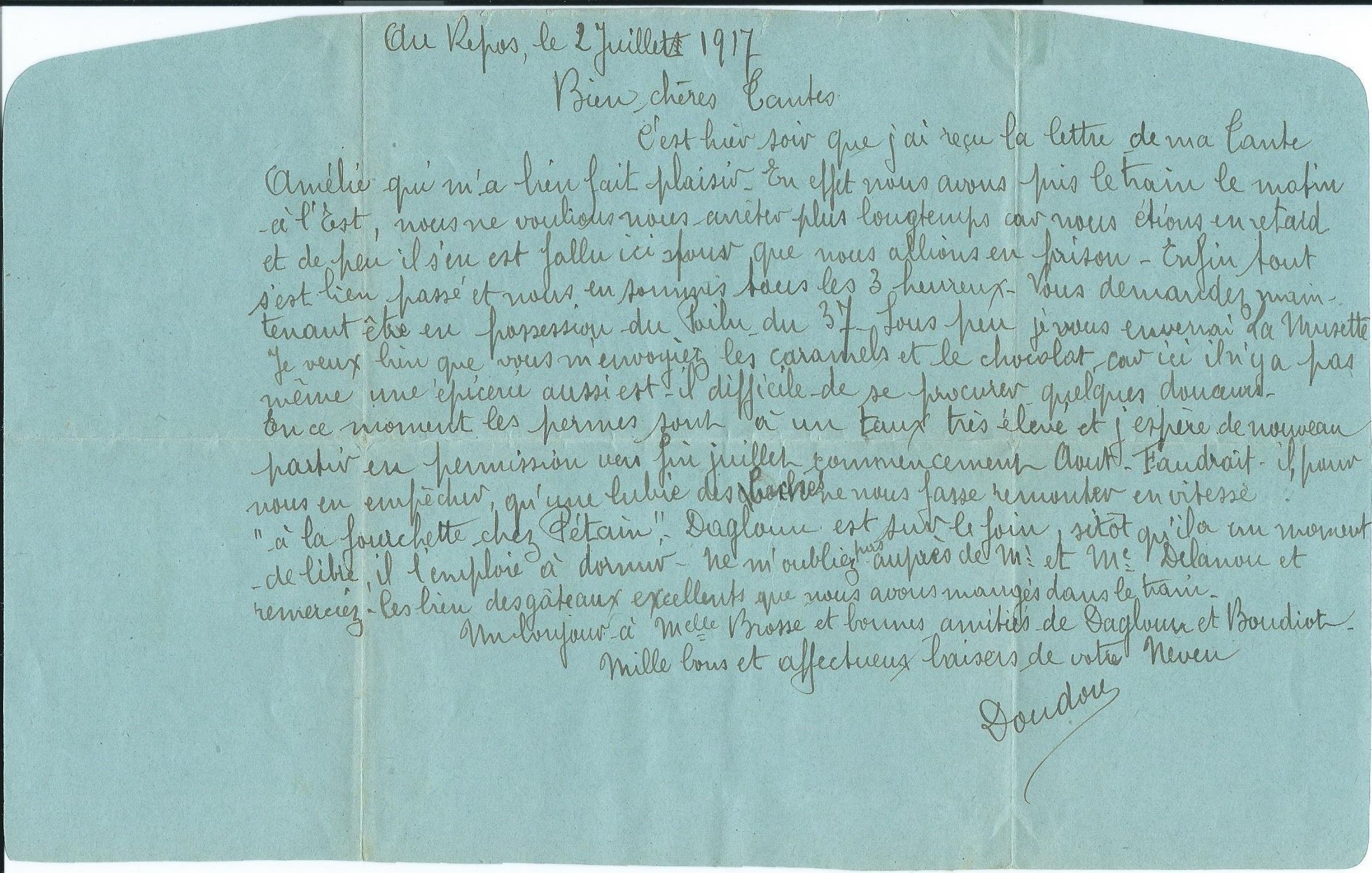 Courrier du 5 juillet 1917 envoyée par l’aide major Guerton