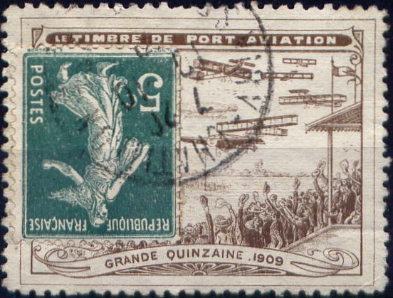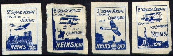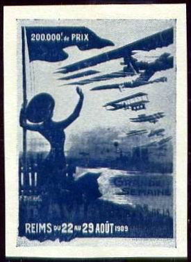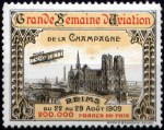 15 – RH. Cinq appareils en vol, au-dessous du mot « Aviation ». Edition E. L. D. (ce type a été utilisé à Reims mais ne paraît pas avoir été émis spécialement pour cette manifestation). 42 x 29. Dentelée 13.