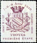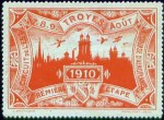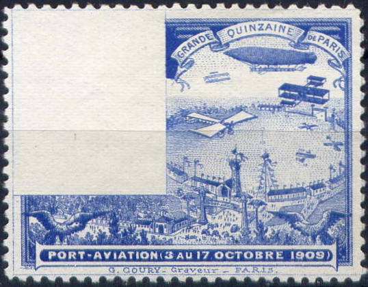 83 – RV. Copie de la vignette porte-timbre de Chalon-sur-Saône (n° 69) à part les armoiries et les légendes. « Septembre 1911. Lancement du Courbet. Lorient aviation ». 30 x 44. Percée en lignes.