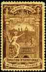 9 – RV. Dans un portique, surmonté des armes de la ville, une femme, assise à gauche sur une balustrade, tient une palme dans la main droite. Au fond, vue de l’exposition. Deux ballons dirigeables dans le ciel. 25 x 41. Dentelée 11,5.