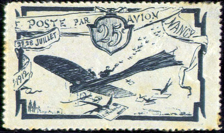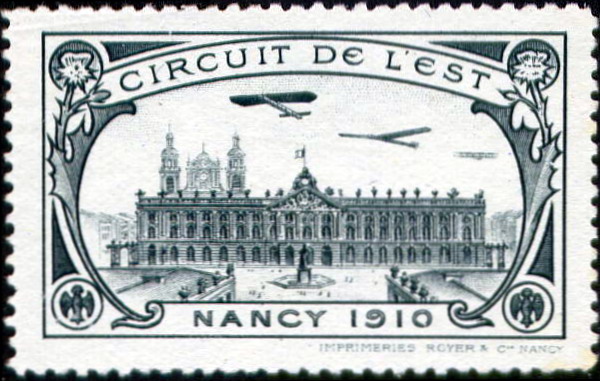 NANCY (Meurthe-et-Moselle) – 27 au 31 Juillet. Premier courrier officiel par aéroplane, le 31 Juillet, de Nancy à Lunéville. Pilote : Lt Nicaud.