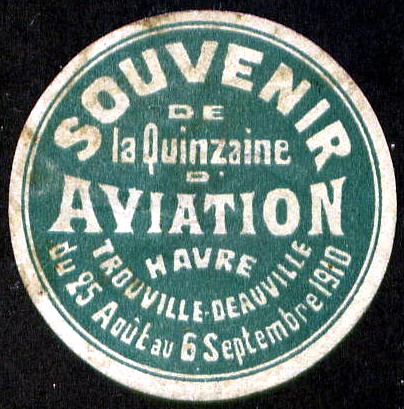 87 – Vignette-sceau ronde, gaufrée, bords ondulés. Légende « Locomotion aérienne. Souvenir 1911. Leblanc photo ».