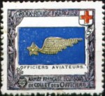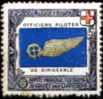 1916 – 105 : « Armée Française. Ecusson de collet des officiers » . Série de 20 vignettes. RH. 30 x 27. Dentelées 11 et ND. Seules, dans la série, deux vignettes se rapportent à l’aérostation et à l’aviation :