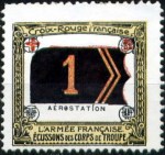 1916 – Emission de l’Effort national français anti-germanique. Série de 10 vignettes, une seule se rapportant à l’aérostation.