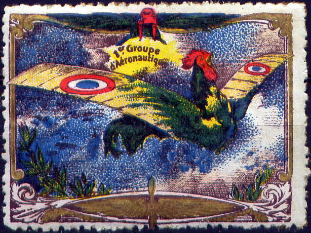 1° Groupe d’aéronautique. RH. 47 x 35. Coq avec des ailes de monoplan. Dentelée.