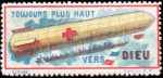 1916 – Toujours plus haut vers Dieu. RH. 54 x 22. Dirigeable frappé d’une croix rouge, avec un drapeau tricolore à la nacelle. Dentelée.