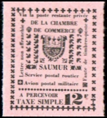 « Essais d’après maquette pour servir de modèle à l’émission d’un timbre-poste pour Saumur ». Tel est le texte avec lequel sont apparutes une vingtaine de simili-vignettes, paraît-il exposées à la Chambre de Commerce de Saulur en 1953. Quelques-unes portent la mention « Par Avion ». Signalons-les malgré tout. Il y eut d’autres vignettes, les années précédentes, qui ne valaient guère mieux.