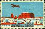 625 – Vignette de propagande pour le tourisme en Franche-Comté. Avion en haut, à gauche. RV. Dentelée. Couleurs : Brun et jaune.