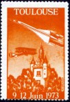 687 – Celle du centre : le Capitole survolé par Concorde et textes correspondants au salon. RV. Dentelée. Couleur : orange sur jaune.