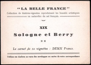 Série XIX – SOLOGNE ET BERRY – 1ère série