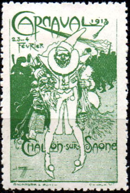 RH. Dentelée. Couleurs : Noir, vert, rouge et jaune sur blanc.