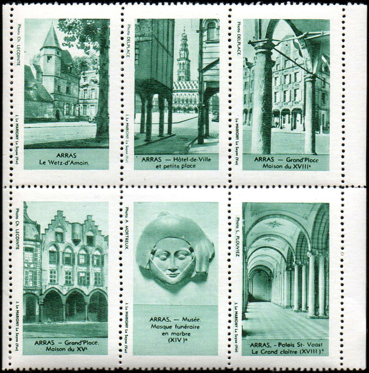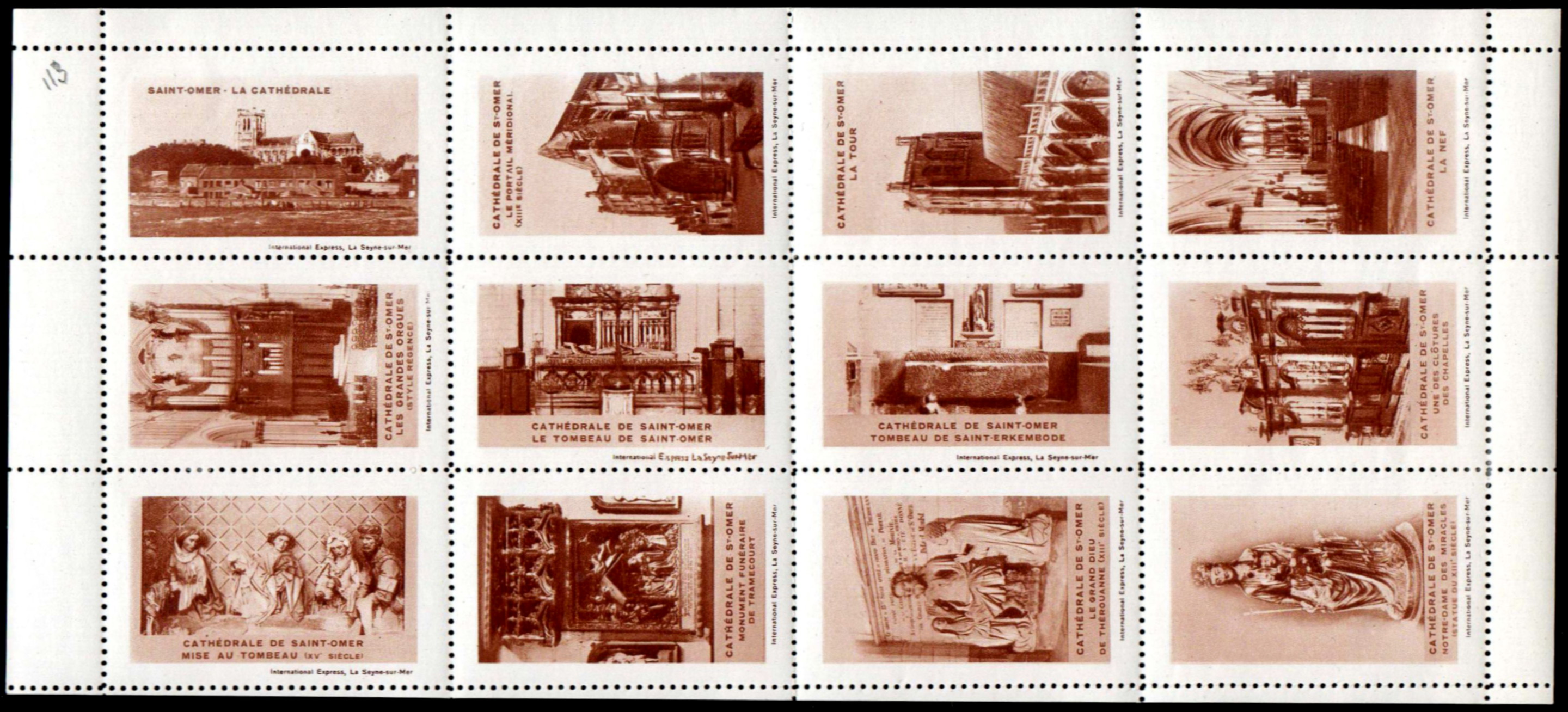 Carnet de 12 vignettes au profit des Oeuvres paroissiales. Dentelées. Imp. International Express – La Seyne-sur-Mer. Couleurs : 1) Vert 2) Brun.