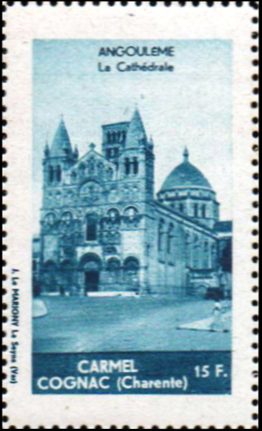 Cette vignette fait partie d’un bloc de 6 (voir ci-dessous, ville de Cognac).