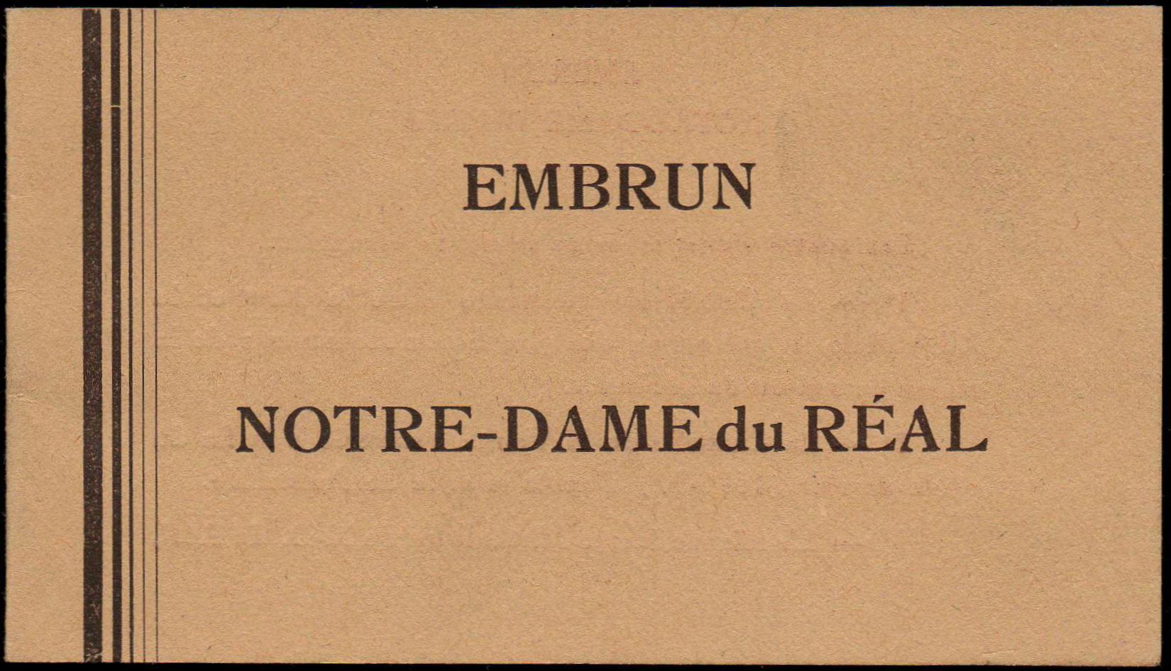 1936 – « Notre-dame du Réal ». Carnet de 4 vignettes venues (1 fr.) au profit du sanctuaire. Imprimerie : International Express – La Seyne-sur-Mer.