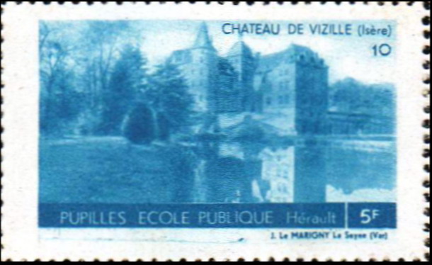 Cette vignette fait partie intégrante d’un bloc avec marges de 6 vignettes différentes (2 rangées verticale de 3), chacune représentant un château (1ère rangée : Nantes / Palais du Louvre / Fontainebleau – 2ème rangée : Pau / Blois / Vizille).